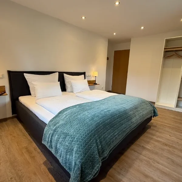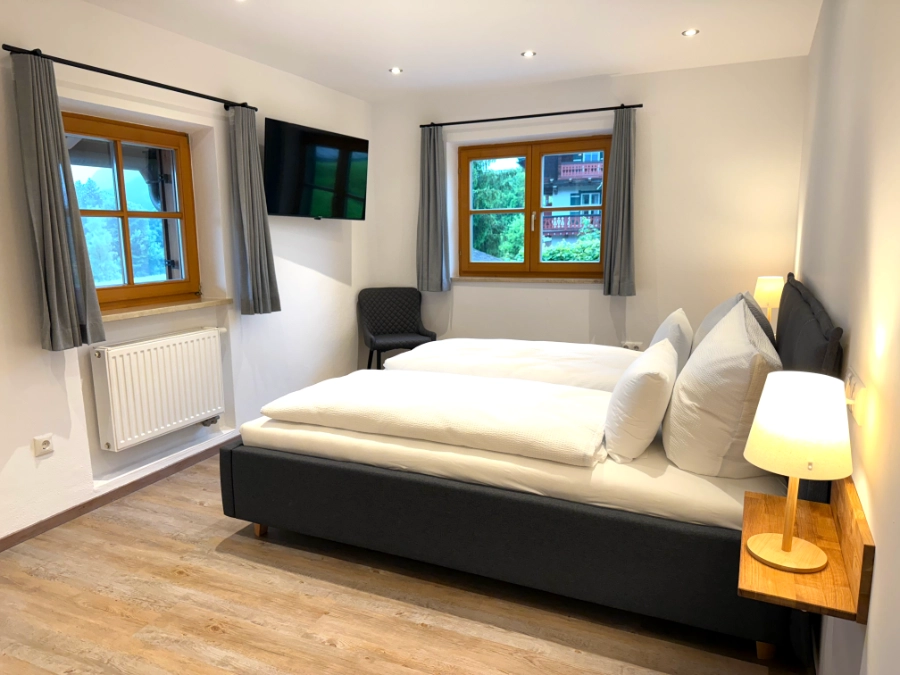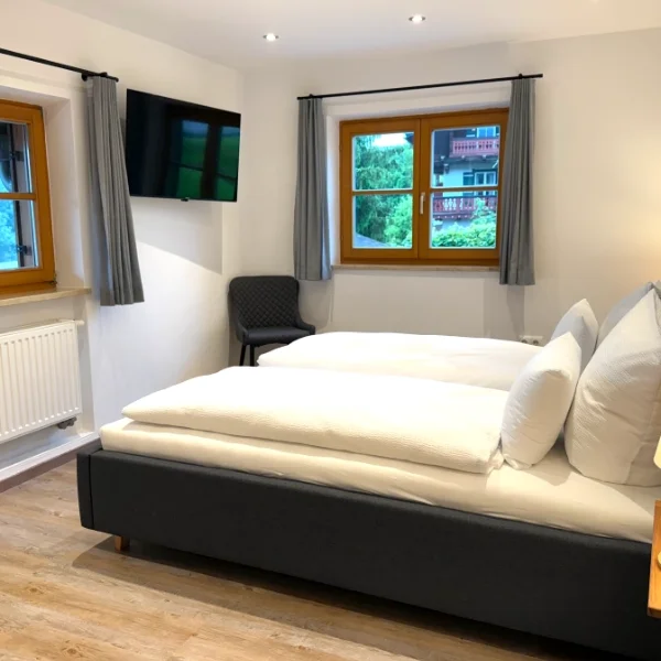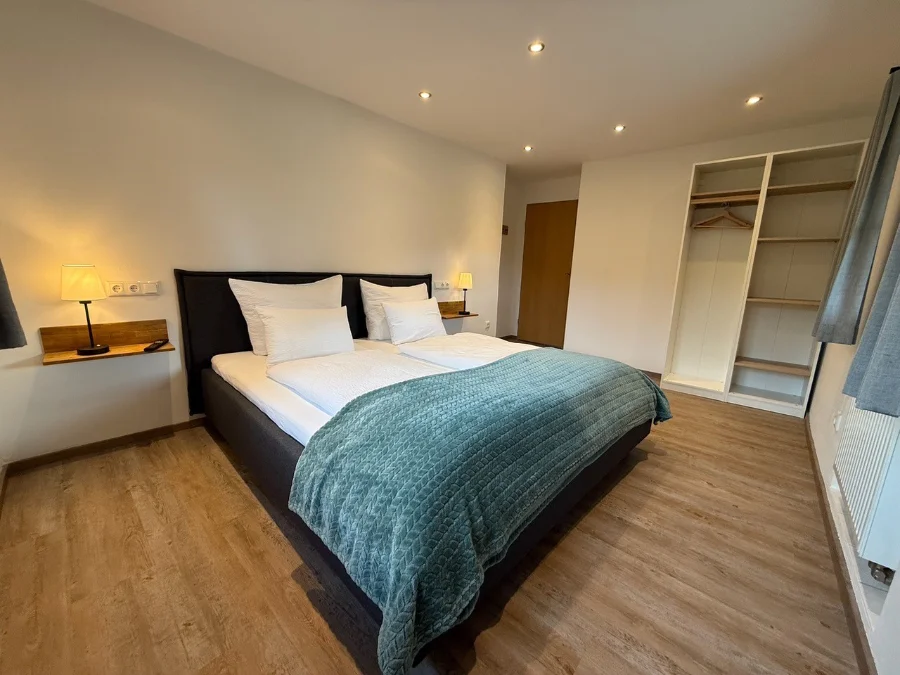 1 Schlafzimmer mit Doppelbett , jeweils 1 internetkompatibler Flachbildschirm-TV, Kofferständer, Schrank